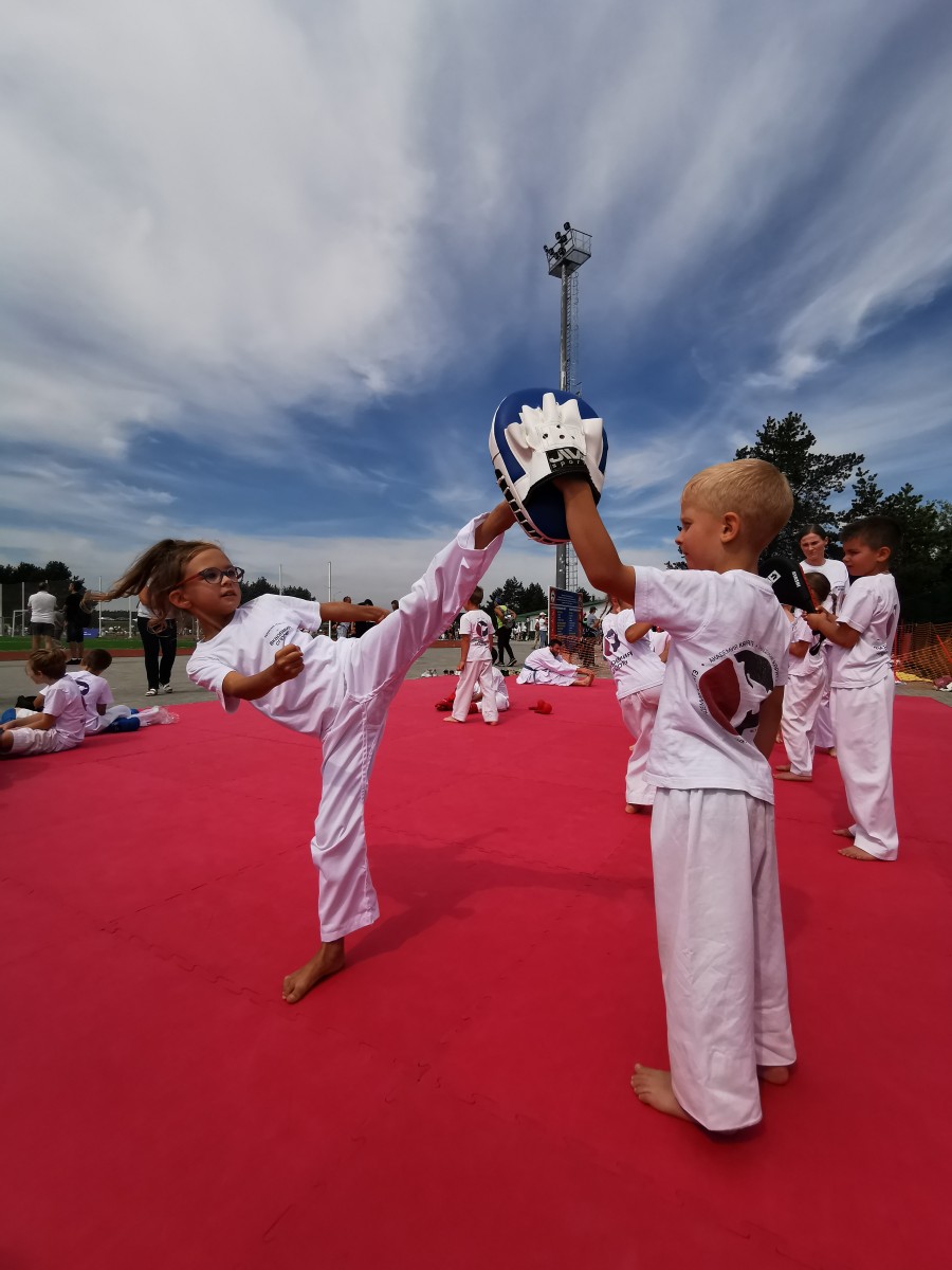 Наши юные спортсмены приняли участие в праздновании Дня физкультурника в сквере Волкова. Сначала ребята размялись на Олимпийской зарядке, потанцевали, а потом показали свое мастерство на открытой тренировке.
